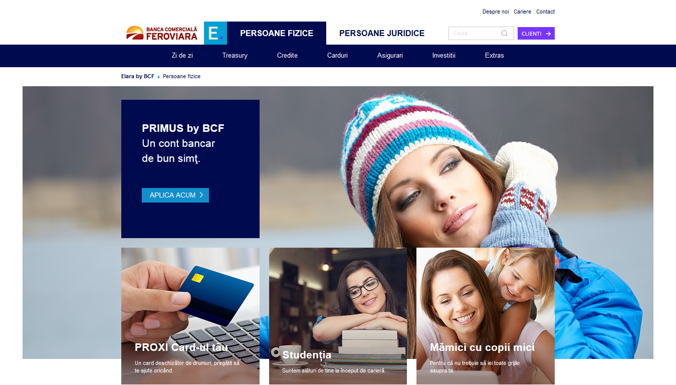 Începând de săptămâna aceasta, clienții Băncii Comerciale Feroviara și nu numai pot accesa un nou portal, mai modern și mai ușor de utilizat ca oricând. Acesta va funcționa pe două coordonate: persoane fizice și persoane juridice, produsele BCF fiind integrate într-o manieră interactivă.