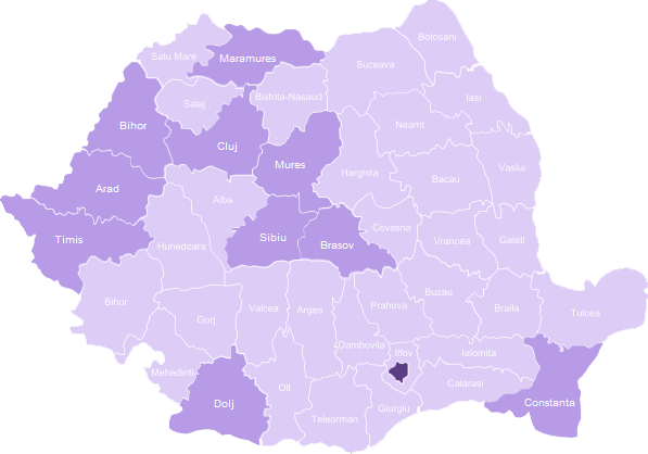 AradBucureştiBraşovBaia MareClujConstanţaCraiovaOradeaSibiuTimişoara |